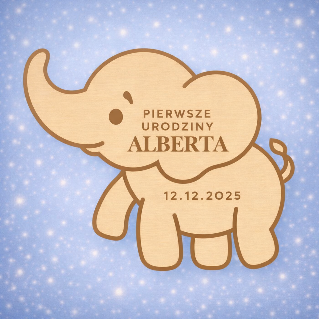 Każda pamiątka tworzona jest na indywidualne zamówienie. Personalizacja obejmuje imię dziecka, datę pierwszych urodzin oraz opcjonalnie krótką dedykację. Subtelna, pastelowa kolorystyka w połączeniu z dziecięcym motywem słonika sprawia, że pamiątka jest estetyczna, ponadczasowa i doskonale pasuje do charakteru pierwszych urodzin.
