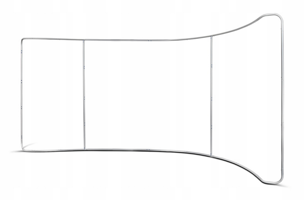 Konstrukcja wykonana z lekkiego aluminium zapewnia stabilność oraz łatwość montażu. System składany umożliwia szybkie przygotowanie stoiska bez użycia narzędzi, a materiałowa grafika naciągana na stelaż gwarantuje elegancki i profesjonalny wygląd.